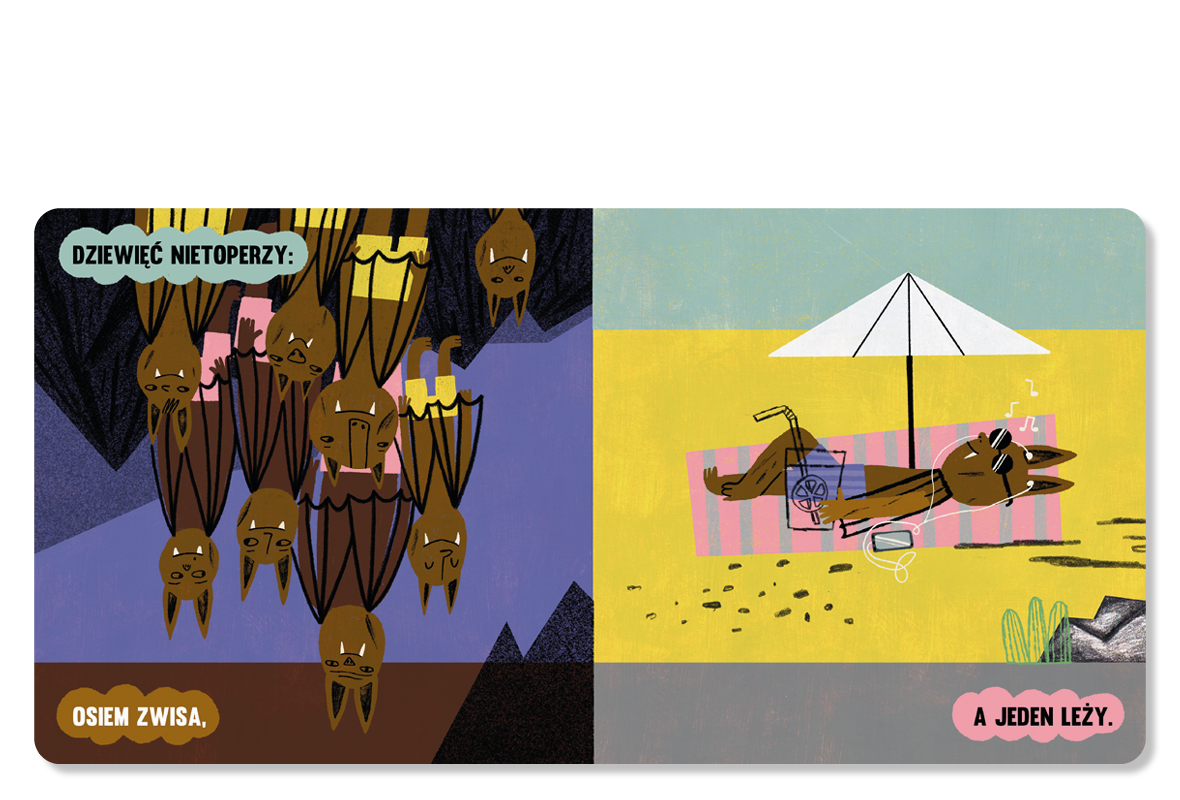 Przed Wami pierwsza książka z serii książek o stworzeniach. W tej wyjątkowej książce, każde stworzenie czeka na Waszą uwagę - możecie je policzyć, przytulić, nakarmić lub położyć spać. Zabawne ilustracje, wyraziste kolory, rymy i dużo humoru – zapraszamy Was do wspólnej zabawy. Nietoperz na plaży, karaluch pod parasolką, wesołe kaczki – wszystkie te stworzenia można (a nawet trzeba) policzyć!