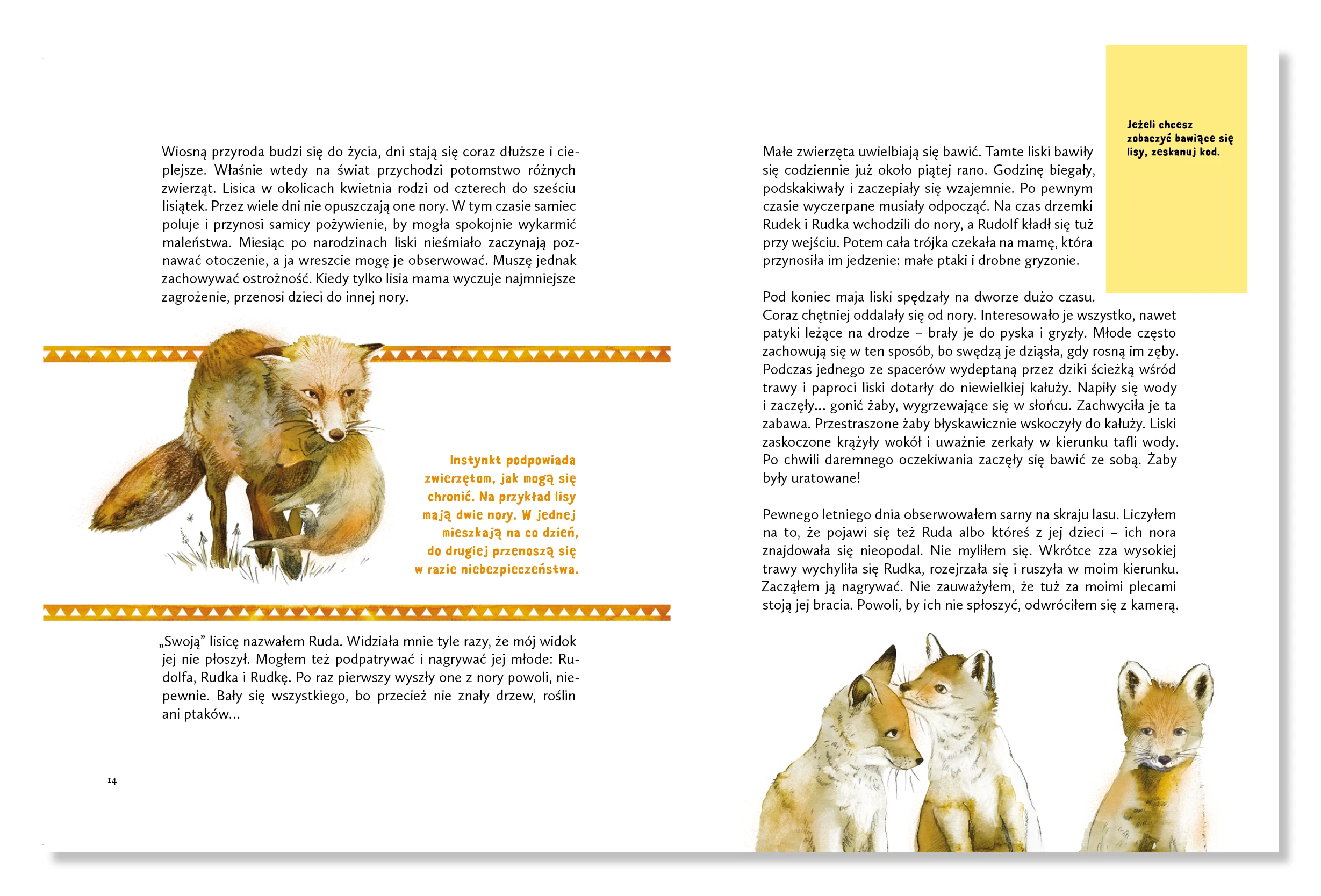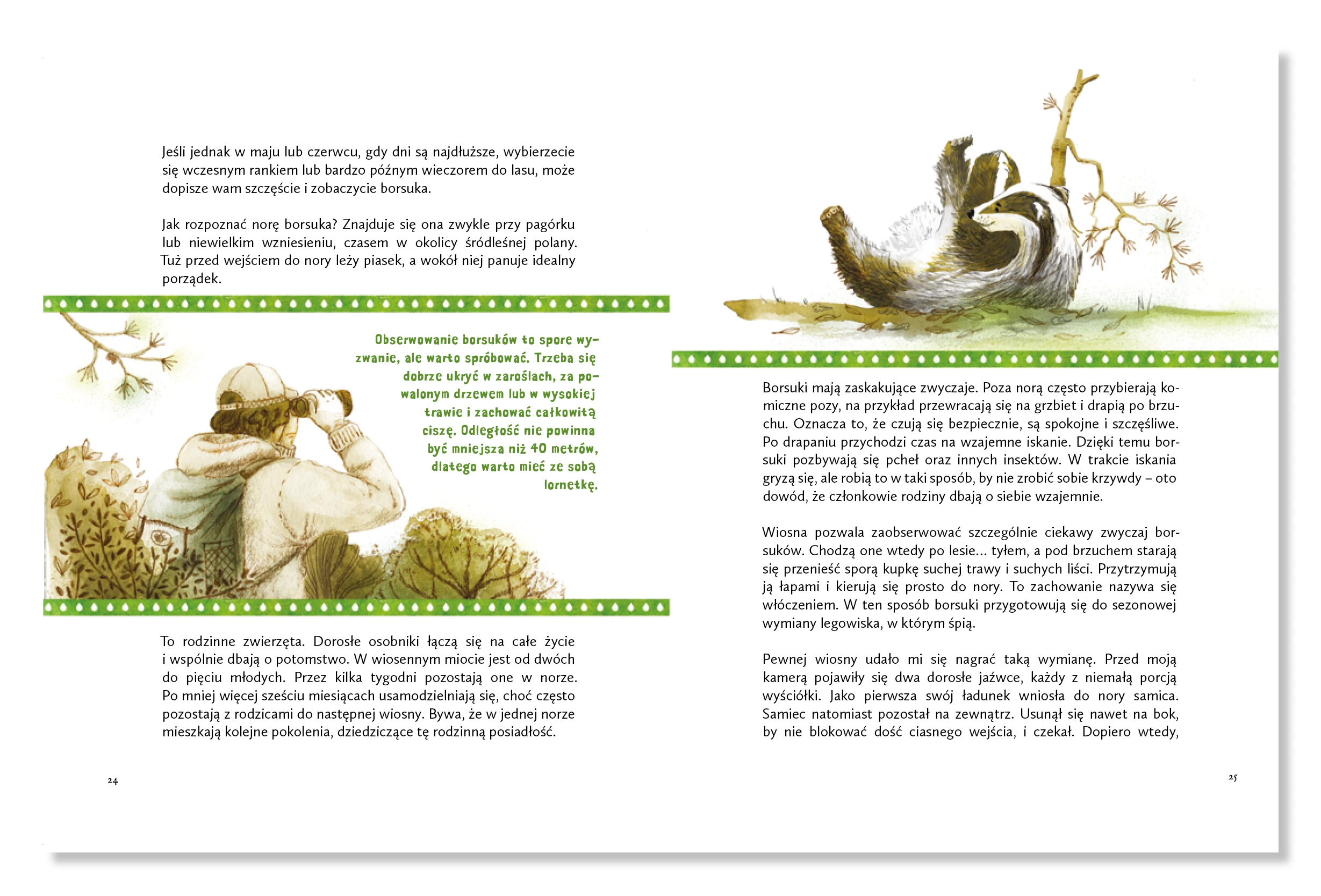 Czy wiecie, że dziki lubią berka i zapasy, małe jelonki uwielbiają bawić się w piasku, a lisy zajadają się gruszkami? Dawid Popończyk, zaprasza na niezwykły spacer po lesie, w trakcie którego poznacie zwyczaje i zabawy zwierząt. Autor od wielu lat obserwuje i filmuje przyrodę, a swoje filmy udostępnia na swoim kanale @LeśnyKawaler w serwisie YouTube. Z pasją opowiada o życiu mieszkańców lasu: lisów, borsuków, wilków, dzików, bobrów, żurawi, jeleni szlachetnych i saren. Mamy nadzieję, że zachęci Was do wyjścia w teren i rozpoczęcia waszych własnych obserwacji zwierząt.