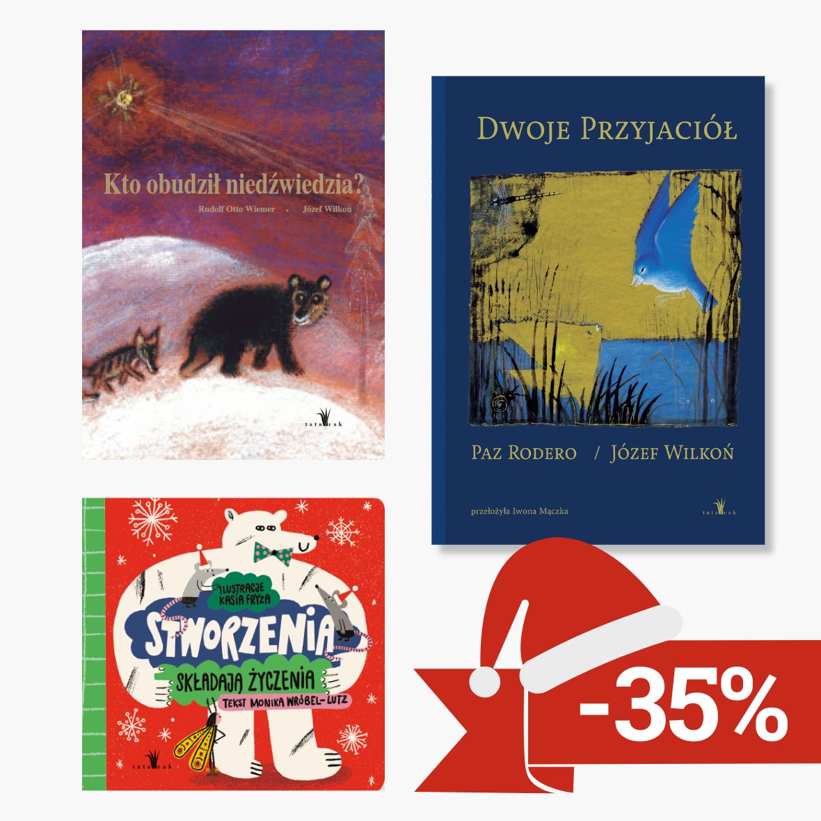 „Kto obudził niedźwiedzia” – Opowieść wigilijna w malarskiej interpretacji Józefa Wilkonia. To historia, w której zwierzęta mówią ludzkim głosem, na niebie lśni gwiazda, a mroźna noc skrywa tajemnicę.. Ciepła historia o przyjaźni i współpracy, która rozgrywa się w zimowym lesie pełnym świątecznych niespodzianek.